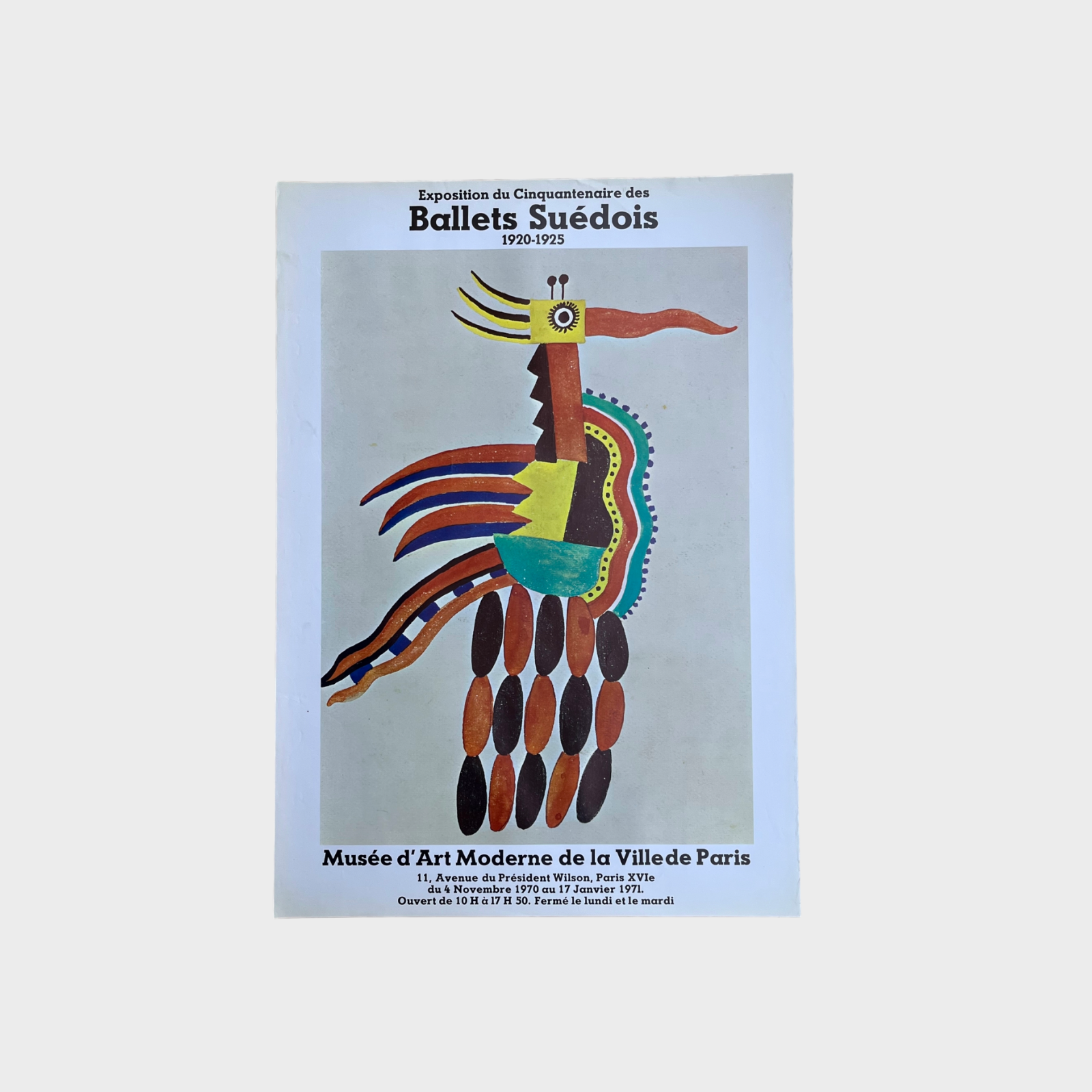 Raro manifesto della mostra Exposition du Cinquantenaire des Ballets Suédois 1920-1925 presso il Musée d’Art Moderne de la Ville de Paris, 1970-1971.